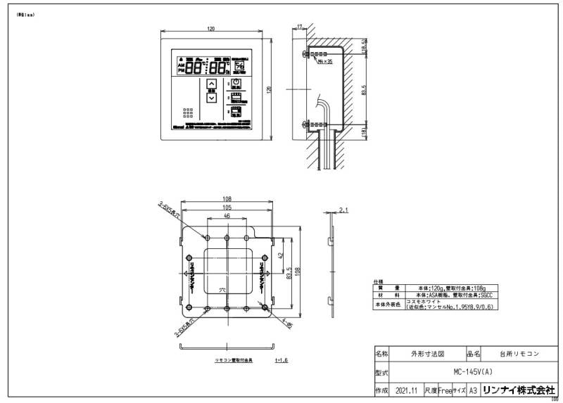【】リンナイ MC-135(A) (23-5117) : ガス給部材 台所リモコン ∴