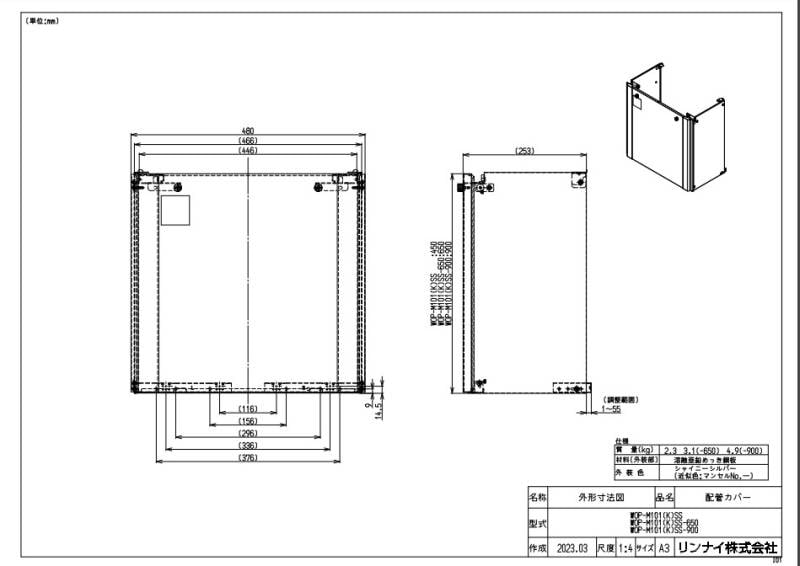 【】リンナイ WOP-M101(K)SS (26-5679) : ガス給部材 配管カバー ∴