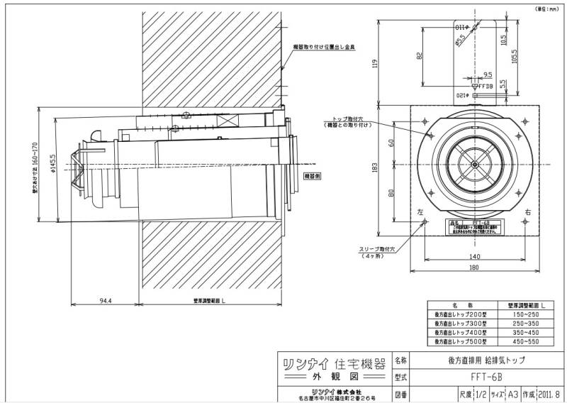 ⊥【】ノーリツ FF-102A (0500341) : 薄型給排気筒セット ∴
