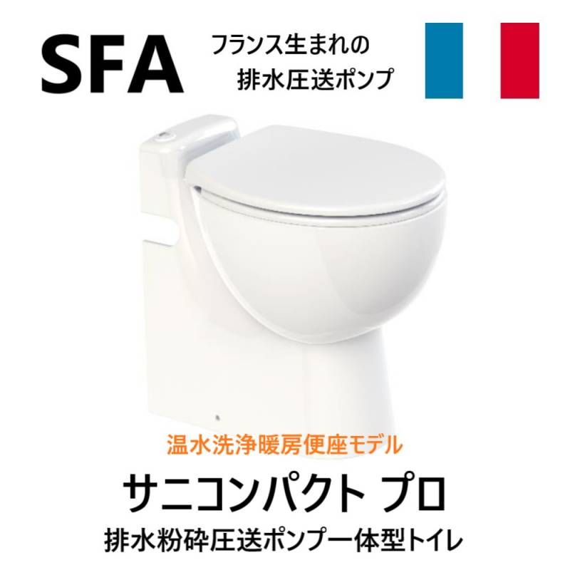 【】SFA C11LVSE-100W 径入30 吐25A 3m 100V・ : 排水圧送粉砕ポンプ一体型トイレ サニコンパクトプロ+温水洗浄便座