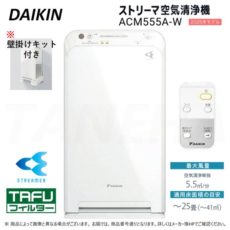 【】◎ダイキン 《ACM555A-W》 ストリーマ空気清浄機 リモコン付 ホワイト ~25畳 ・ 単100V(50/60Hz) : ∴(旧品番→ACM55Z-W)