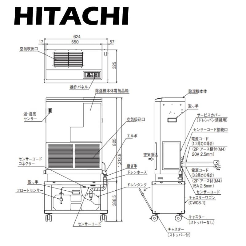 【】◎日立 RK-NP08PV2-B 黒色 単相100V : 産業用除湿機 小型床置タイプ(インバーター)再熱専用機∴