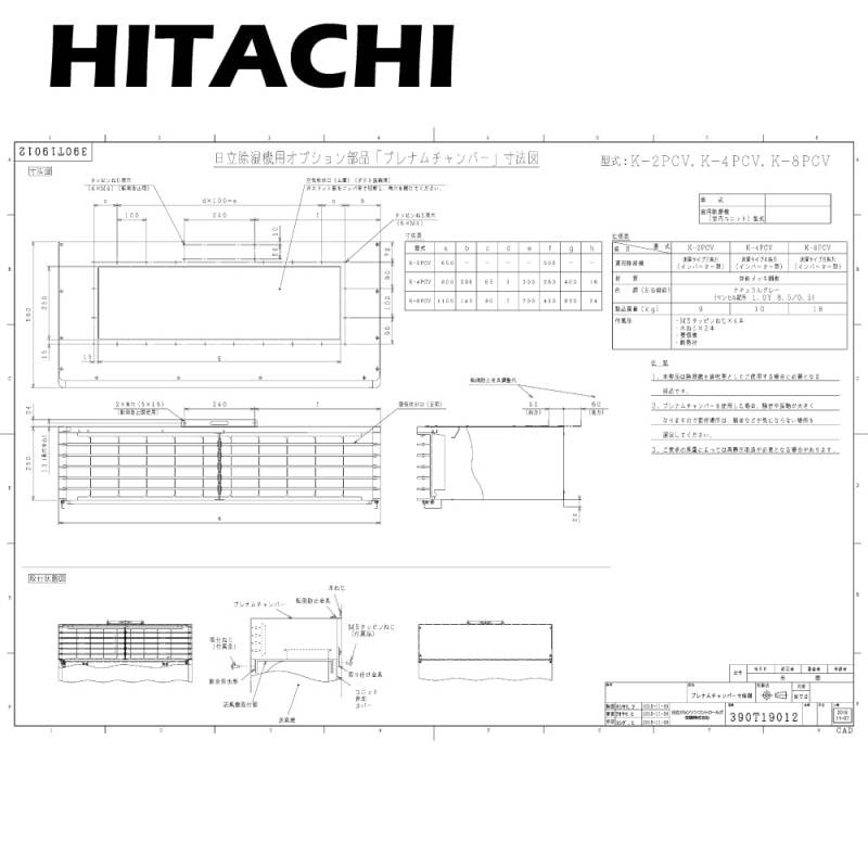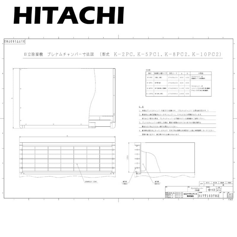 日立 K-2PC 1.5-2.2Kw用 : 産業用除湿機 床置タイプ(一定速機) プレナムチャンバー∴