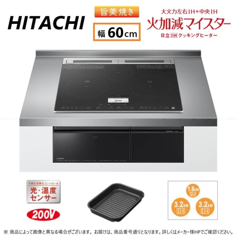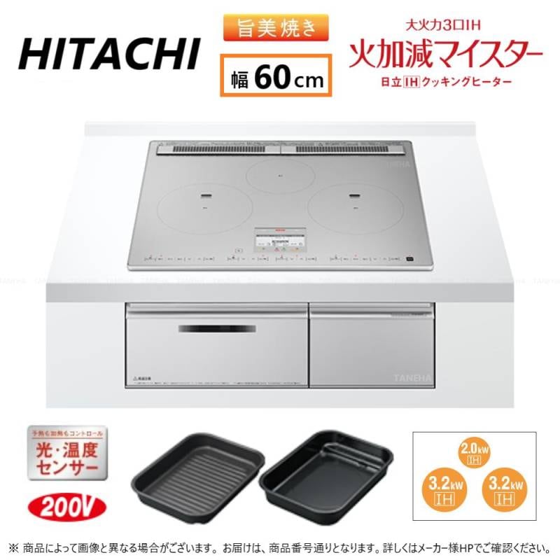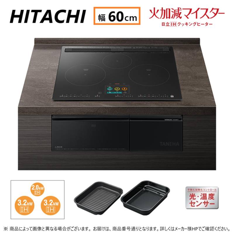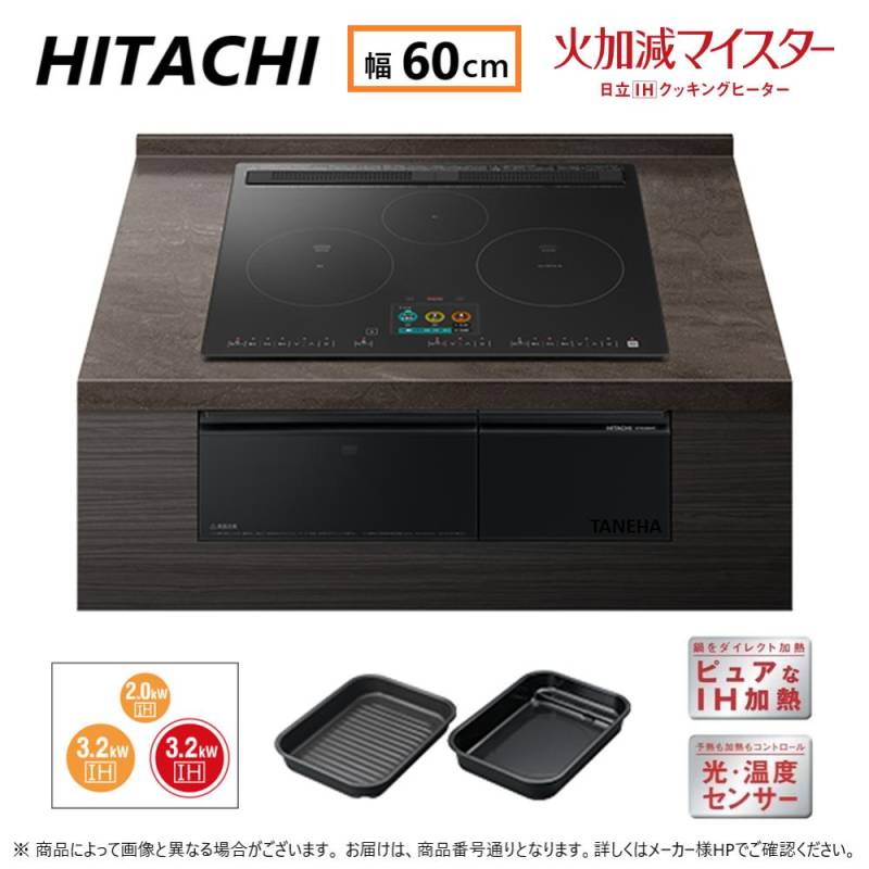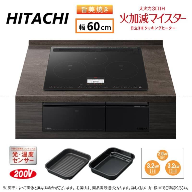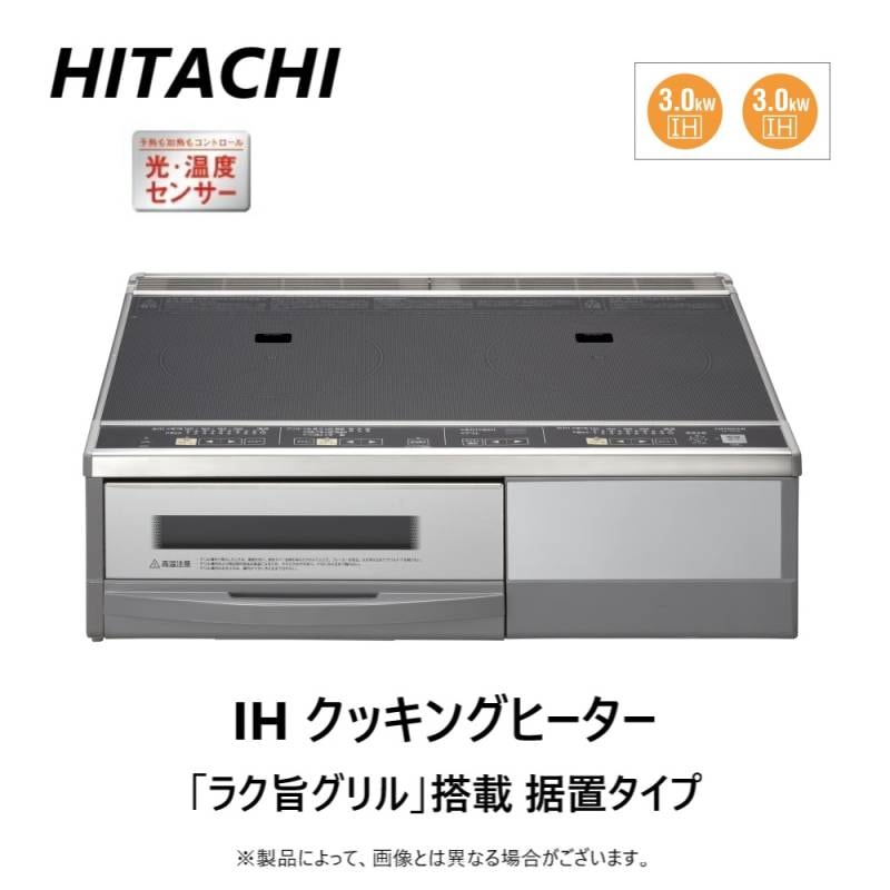 ⊥【】日立 鉄・ステンレス対応2口IH 据置(左右IH3.0kW)20A59cmトッップ∴ : HT-32AG K (6763-6592)(天面ブラック/前面シルバー)