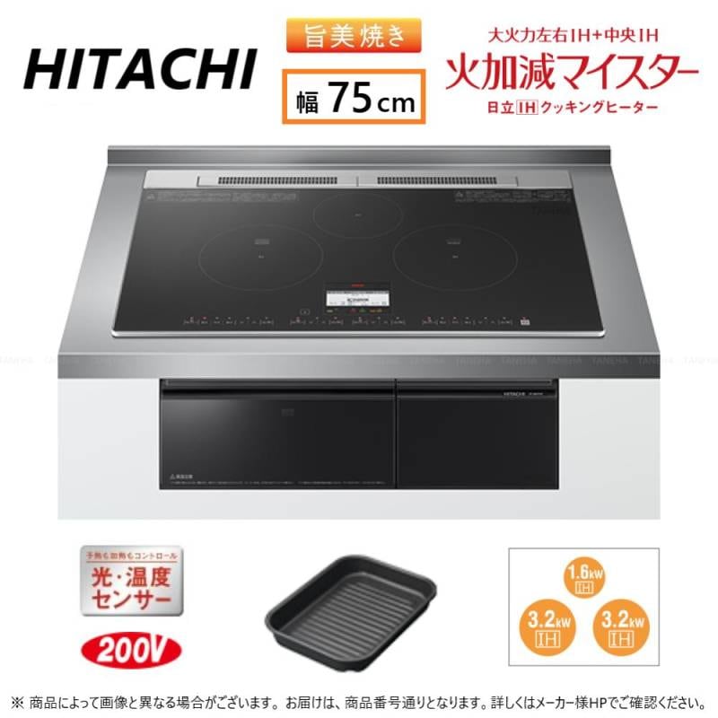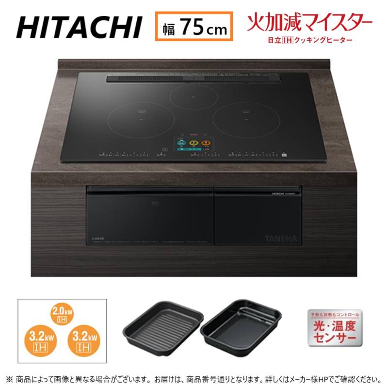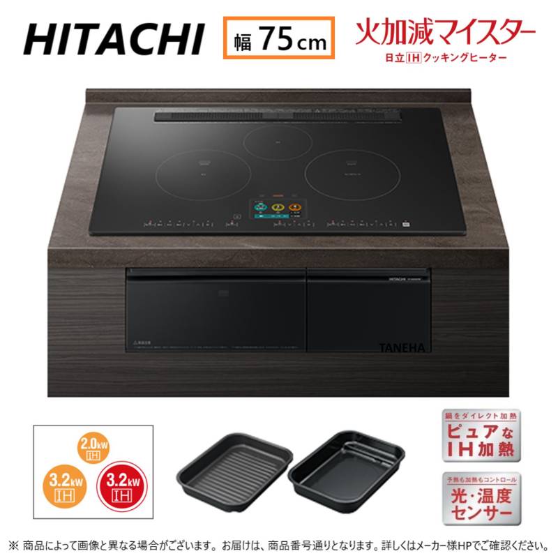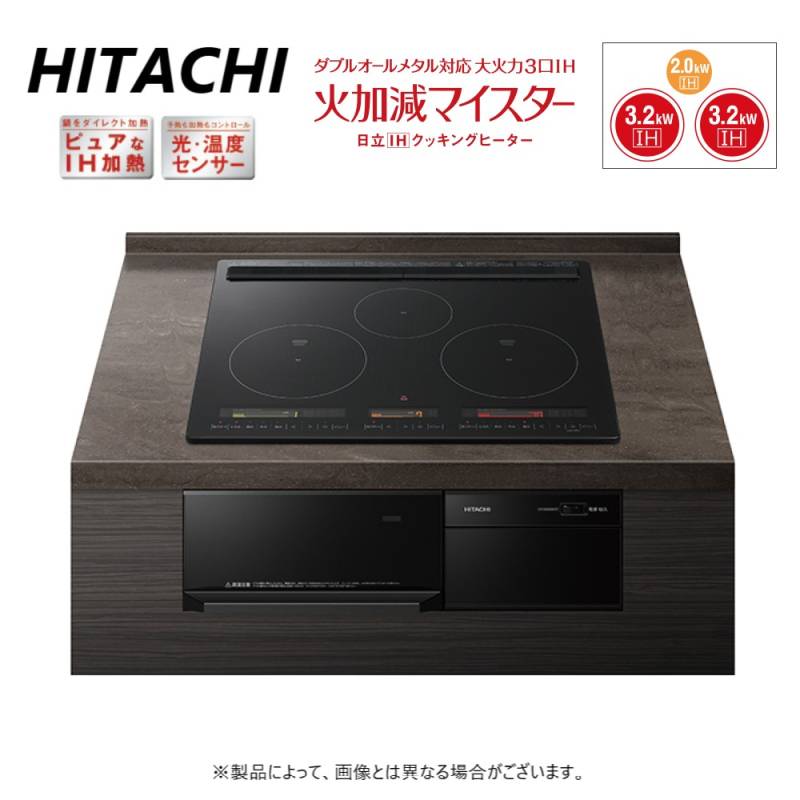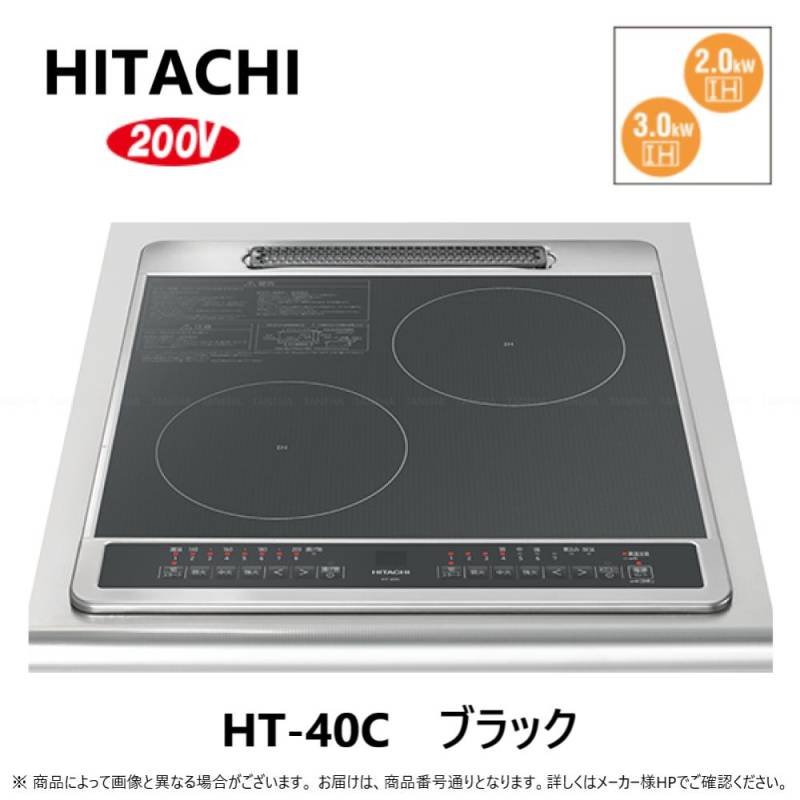 ⊥【】◎日立 鉄・ステンレス対応2口IH (左IH3.0kW 右IH2.0kW)45cmトッップ ∴ : HT-40C (6763-6338)(ブラック)