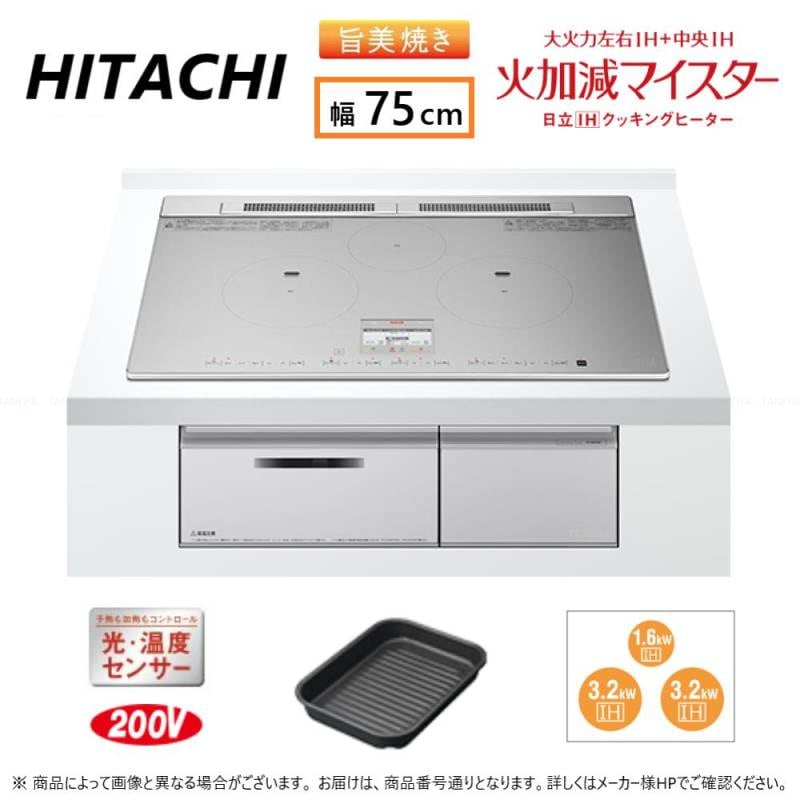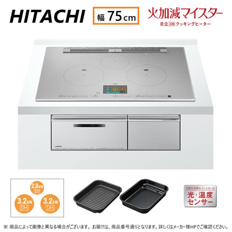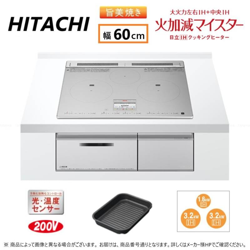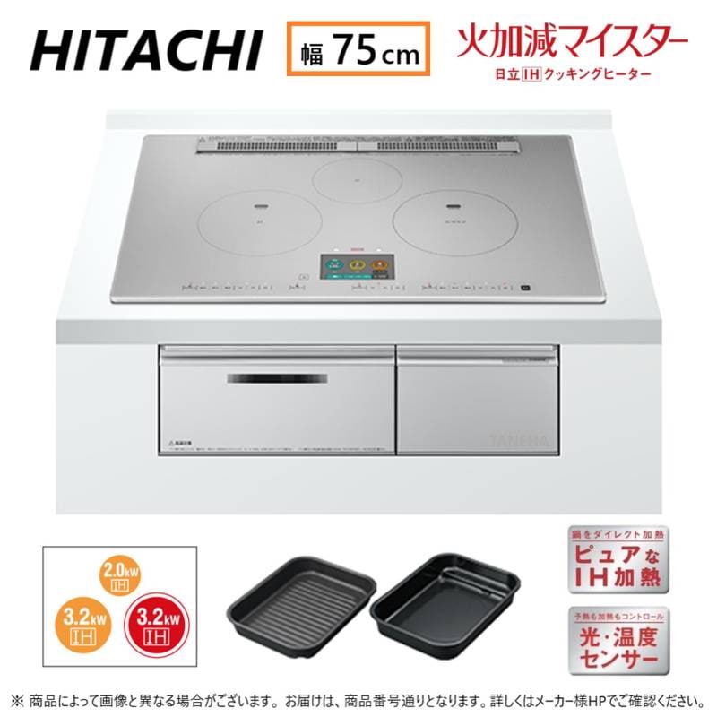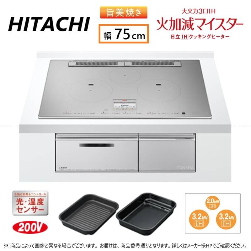⊥【】◎日立 鉄・ステンレス対応2口IH (左IH3.0kW 右IH2.0kW)45cmトッップ ∴ : HT-40SC (6763-6333)(シルバー )