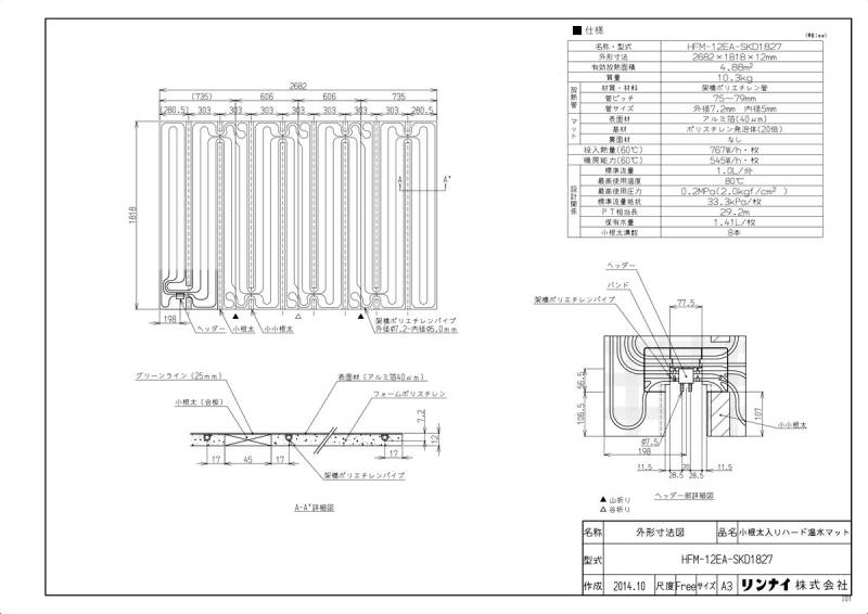【】リンナイ HFM-12EA-SKD1827 (25-7381) : 小根太入り温水マット 2682×1818×12 ∴