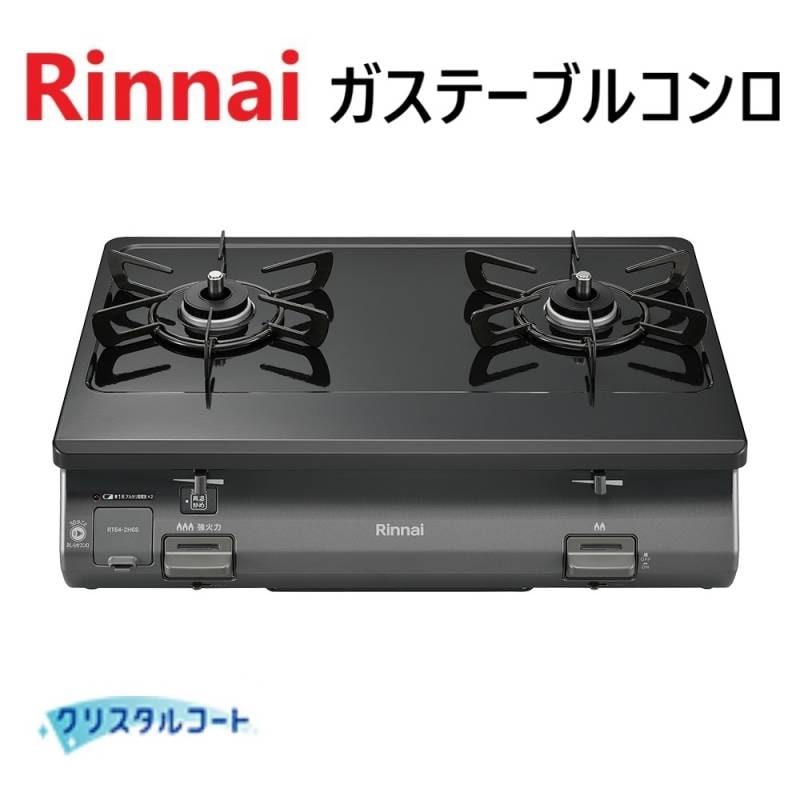 ⊥・リンナイ RT64-2H6S-L-都市ガス : ワンピーストップガステーブルコンロ|60cm|グリルなし|ブラック ∴