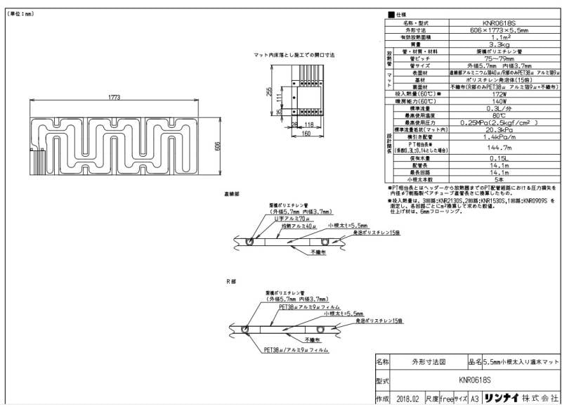 【≠】リンナイ KNR0618SH 温水マツト (26-4097) : 温水マット ∴