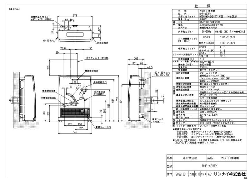 【≠】リンナイ RHF-580FT LPG (プロパンガス) (10-8890) (RHF-561FTの後継) : ガス暖房機 FF ∴・
