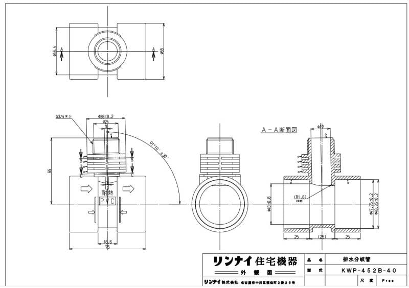 リンナイ KWP-452B : 食洗機用 排水分岐管 VP50 ∴