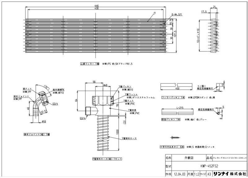 リンナイ KWP-452FS2 フイラ-ホ-スセツト (80-6815) : オプション 食洗機用 ∴