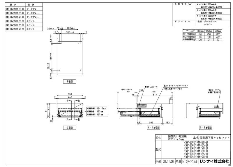 リンナイ KWP-D401KM-85-Bキヤビネ (80-8990) : オプション 食洗機用 ∴