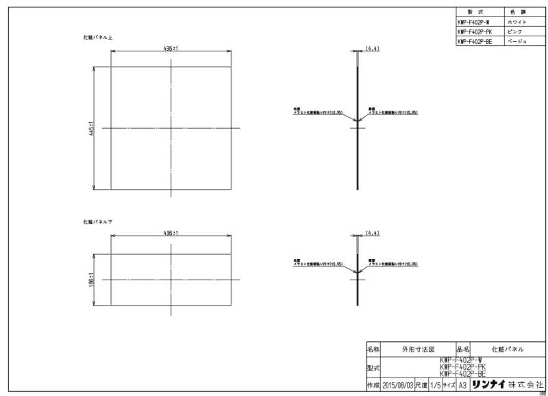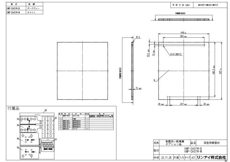 リンナイ KWP-454KP-W : 食洗機用 化粧パネル ホワイト ∴