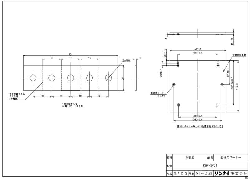 リンナイ KWP-SP01 スペーサ- (80-7838) : オプション 食洗機用 ∴