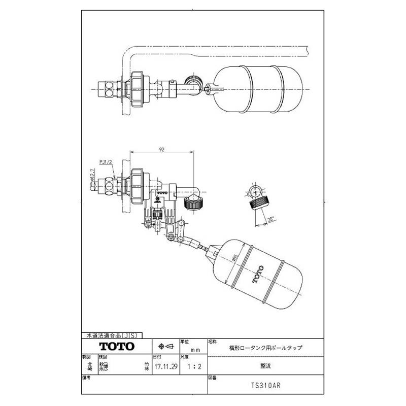 【】TOTO TS310AR (常) ◆ : 横形ロータンク用ボールタップ (整流) ∴